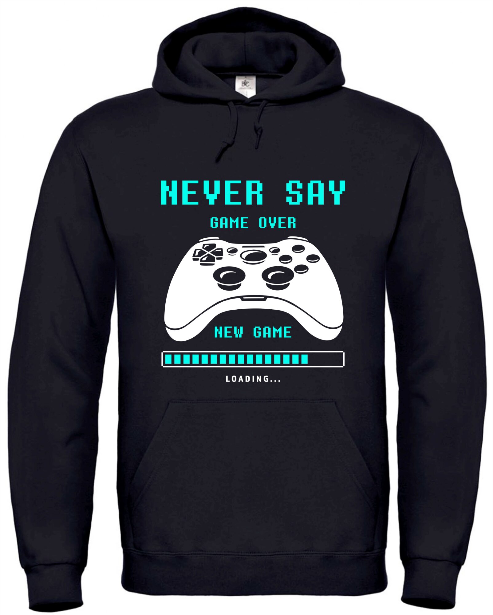 Bleib stylisch und warm beim Zocken mit unserem Gaming Hoodie „Never Say Game Over“! Der coole Kapuzenpullover in Schwarz mit weiß-blauem Gamepad-Print und dem kultigen Spruch ist ein echter Hingucker für alle Zocker, Retro-Fans und Nerds. Mit weichem Innenfutter, robuster Verarbeitung und einem komfortablen Regular Fit ist dieser Hoodie perfekt für lange Gaming-Nächte, Conventions oder entspannte Tage im Alltag. Egal ob für dich oder als Geschenk für einen Gamer – dieser Hoodie bringt das nächste Level in deinen Kleiderschrank!