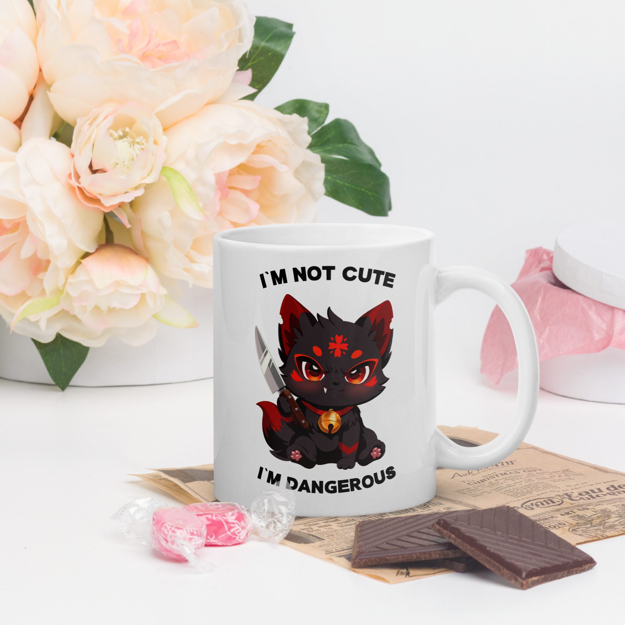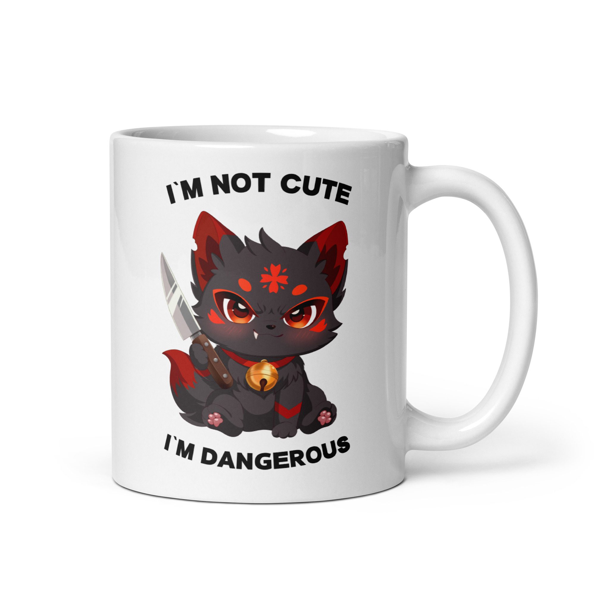 Das verspielte Anime Design kombiniert niedliche Ästhetik mit einem frechen Statement. In der Gestaltung greift die Tasse humorvoll den Spruch im not cute im dangerous auf und verleiht deinem Getränk einen selbstbewussten Charakter.