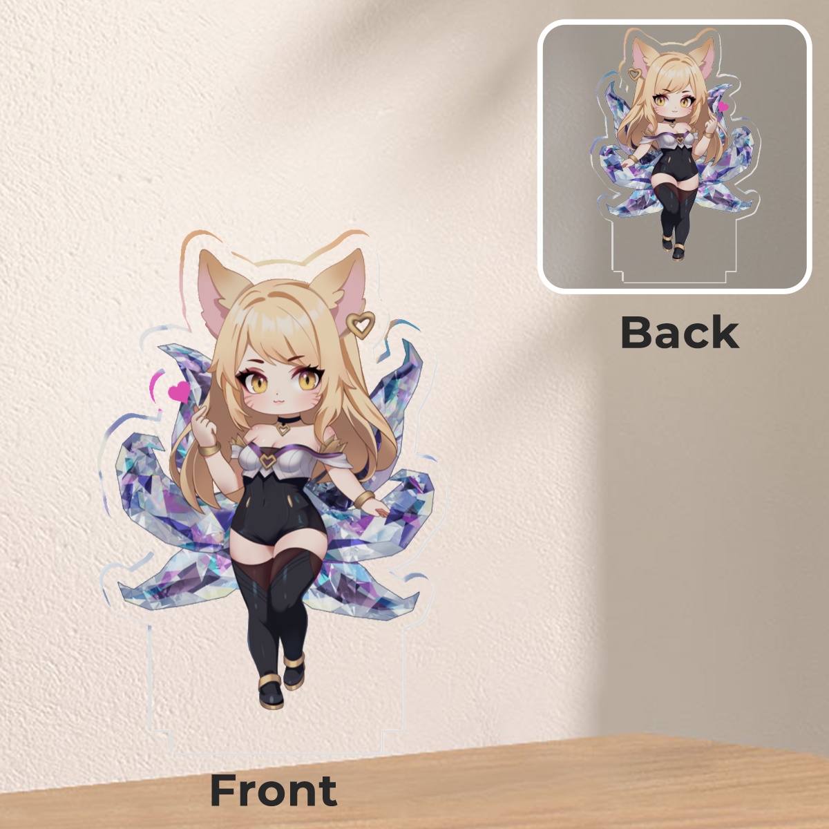 Dieser hochwertige Acryl Standee zeigt K/DA Ahri aus League of Legends in einem detailreichen Design. Mit einer Größe von 102 x 68 mm und einem stabilen Standfuß mit 40 mm Durchmesser ist er perfekt als dekoratives Sammlerstück für Schreibtische, Regale oder Vitrinen geeignet.