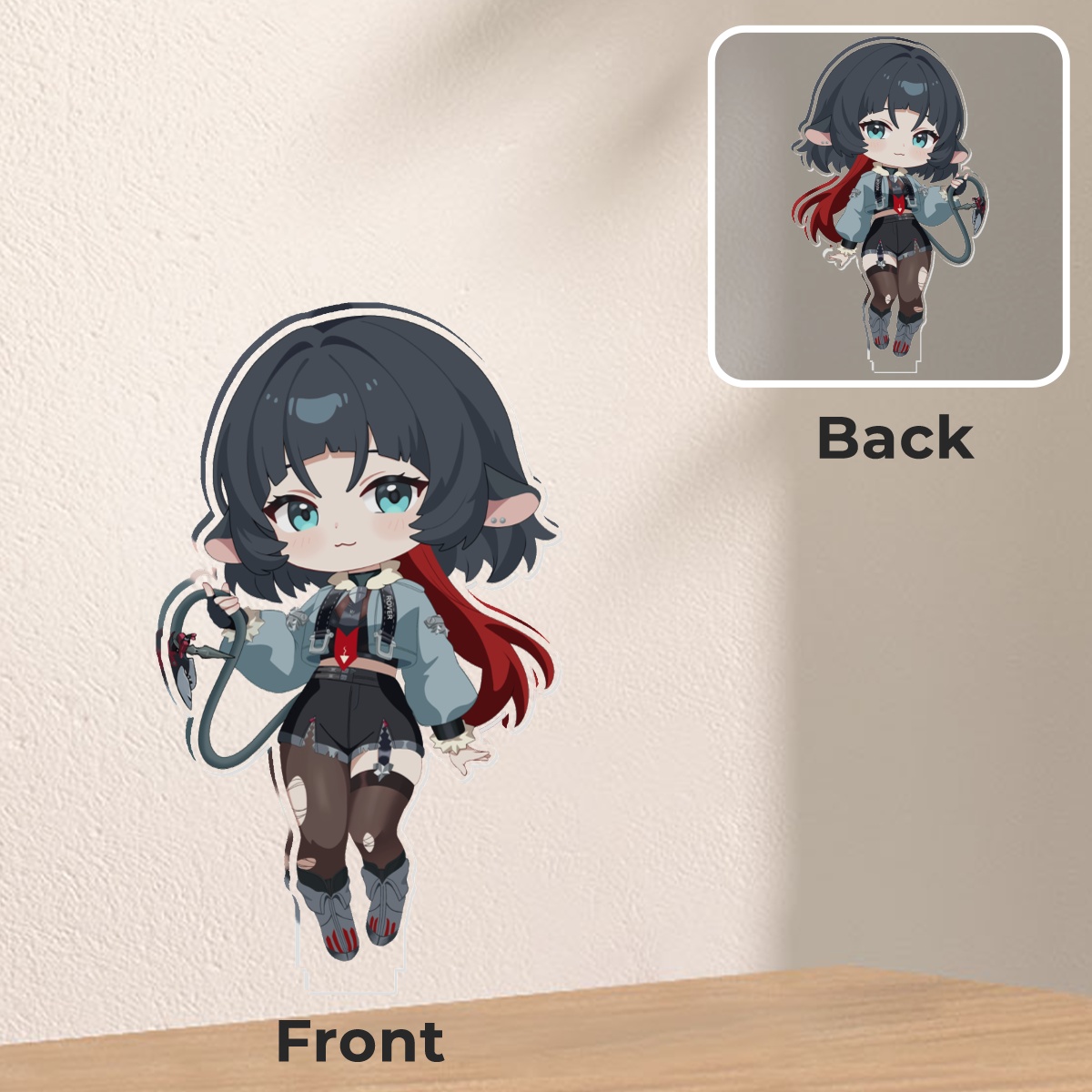 Dieser hochwertige Acryl Standee zeigt Jane Doe aus Zenless Zone Zero in einem detailreichen Design. Mit einer Höhe von 102 mm und einem stabilen Standfuß (40 x 27 mm) ist er perfekt als dekoratives Sammlerstück für Schreibtische, Regale oder Vitrinen geeignet.
